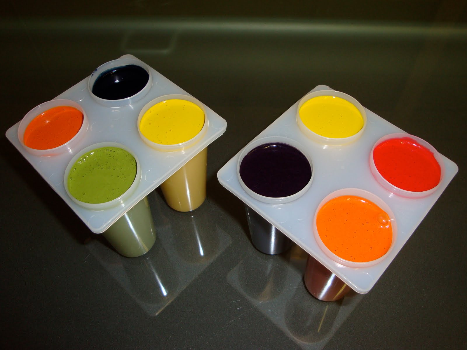 Pour the paint in the molds and freeze overnight.